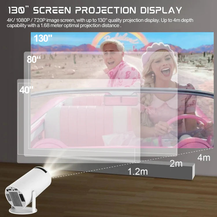 PROJECTOR X™️はネイティブ解像度が1280x720pで、クリアで鮮明なディスプレイを実現しています。画面サイズについては、最大で130インチの印象的な映像を投影でき、あなたの空間を真のシネマ体験に変えます。